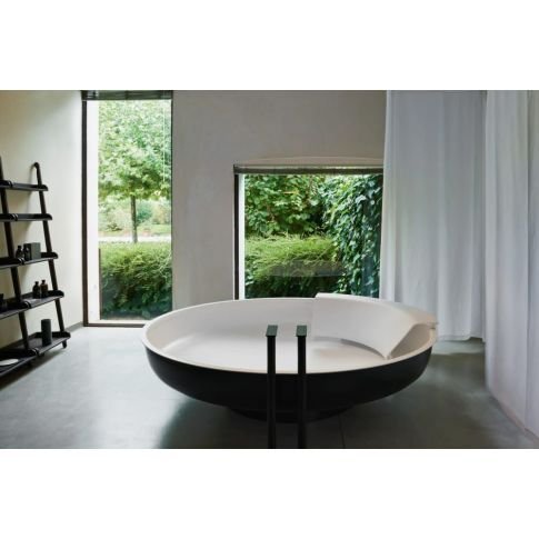 Avec un diamètre généreux d’environ 204 cm et une hauteur d’environ 50 cm, cette baignoire offre une grande capacité d’eau pour une expérience de bain spacieuse et relaxante. Elle intègre un dosseret ergonomique facilitant l’immersion confortable, et un système de trop‑plein pour une utilisation sécurisée.