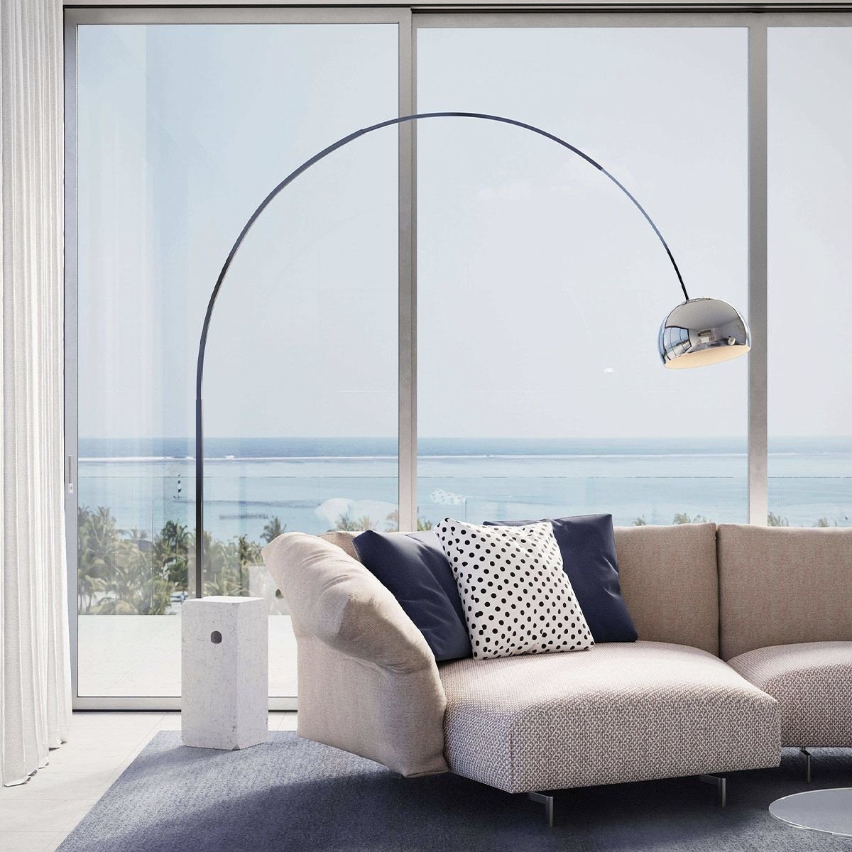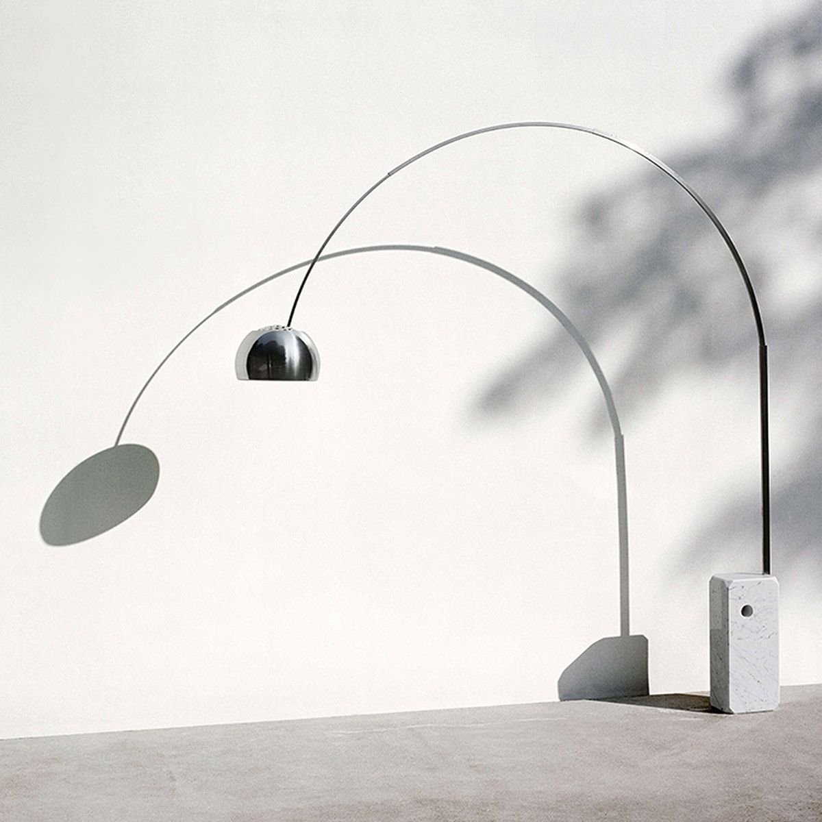 Lampadaire sur pied au design emblématique, combinant une base en marbre massif et une structure métallique arquée avec abat‑jour réglable. Il offre un éclairage direct ou d’ambiance parfait pour les salons spacieux, coins détente ou salles à vivre modernes.