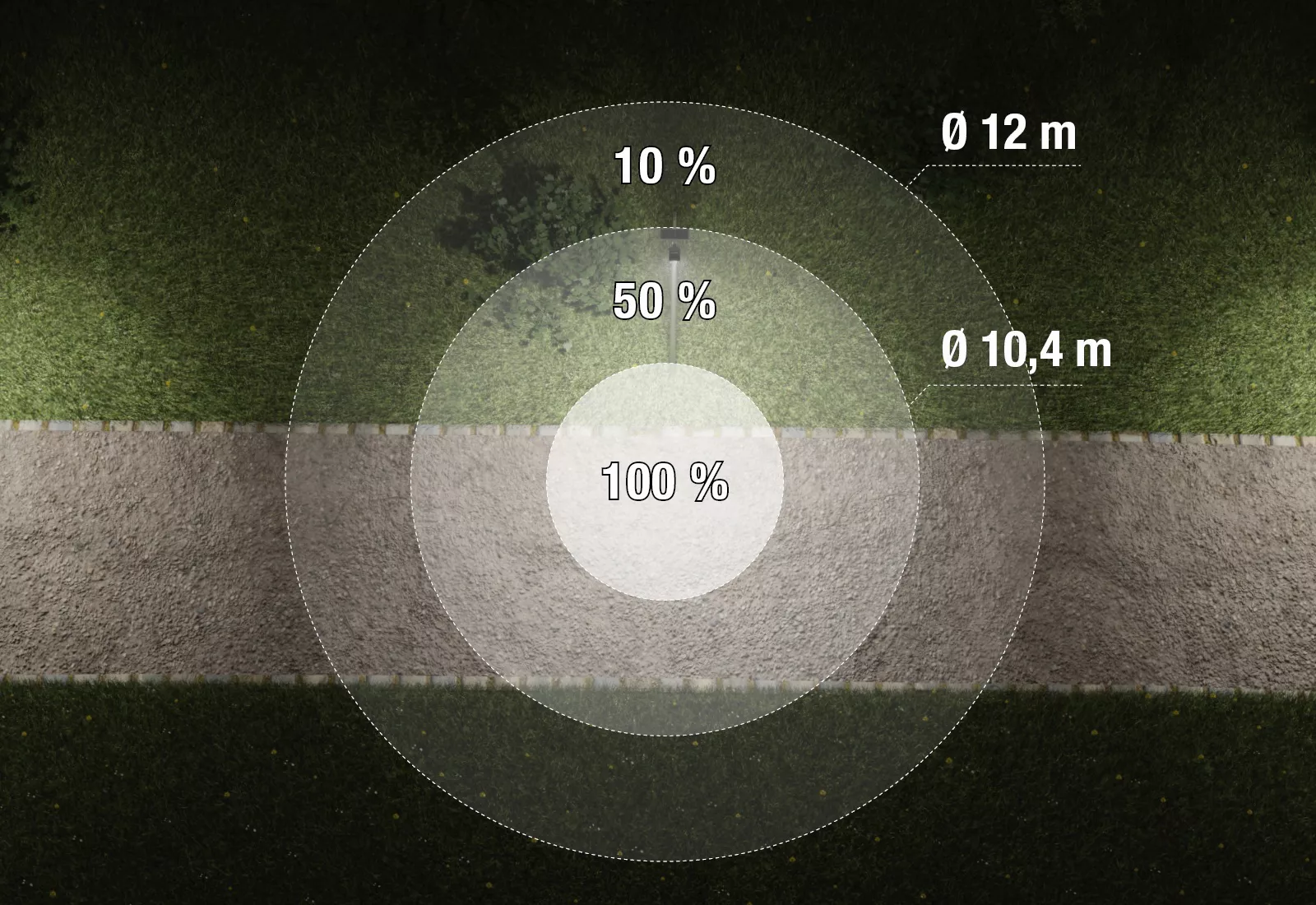 La lampe LED puissante de 8 W produit un flux lumineux d’environ 1 280 lumens dans une lumière blanche froide (≈ 6 000 K), ce qui permet une illumination efficace sur de larges zones, jusqu’à environ 15 m de rayon.